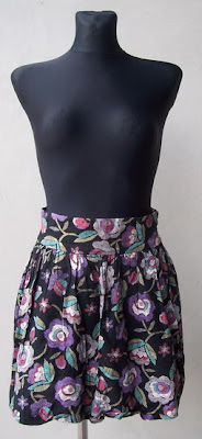 Śliczna, kwiecista spódniczka, lekko marszczona, z karczkiem, z nieco cieplejszego materiału.